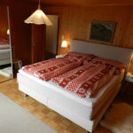 Tegen de westelijke helling staat dit gezellige chalet met op de 2e etage een ruime vakantiewoning welke via trappenhuis is te bereiken en als volgt is ingedeeld: entree, ruime woonkamer met open haard, eetkeuken, badkamer met ligbad en toilet, drie ruime 2-persoons slaapkamers, groot balkon over de gehele breedte van het chalet met uitzicht over het dal. De inrichting van de woning is in 2019 vernieuwd. De woning op de 1e etage is permanent bewoond.